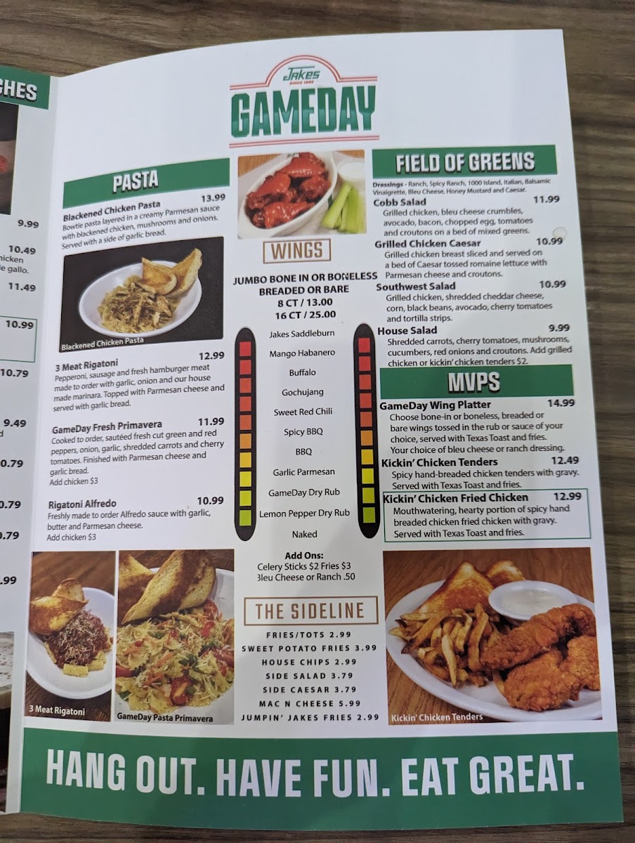 Sauces: WTF Hot Sauce Buffalo Mild Buffalo Medium Buffalo Hot Border Town Chipotle Cajun Cowboy Chuckwagon Chipotle Cowtown Original Finger Licking Zing Garlic Parmesan Gunbarrel Habanero Hot Howling Hickory Mild Hickory Nashville Hot Sauce Saddle Burn Scorpion Peppers Sriracha Habanero Sweet Chili Teriyaki Trail Boss Habanero OB Special Reserve Dry Rub: Lemon Pepper, Cajun, Ranch, Spicy Ranch, Spicy Lemon Pepper
